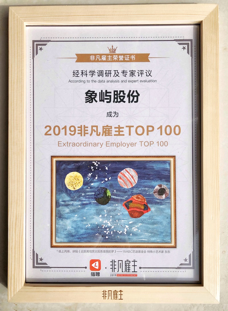 象嶼股份入選“2019非凡雇主TOP100”及“2019福建變革非凡雇主”